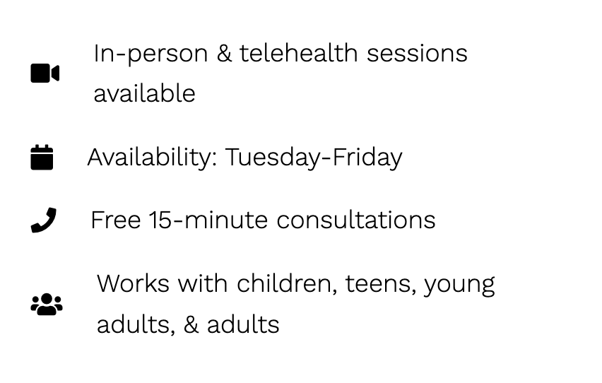 Supporting adolescents, young adults, and individuals of all ages in building emotional regulation, navigating life transitions, and feeling genuinely understood in a safe, warm therapeutic space.
